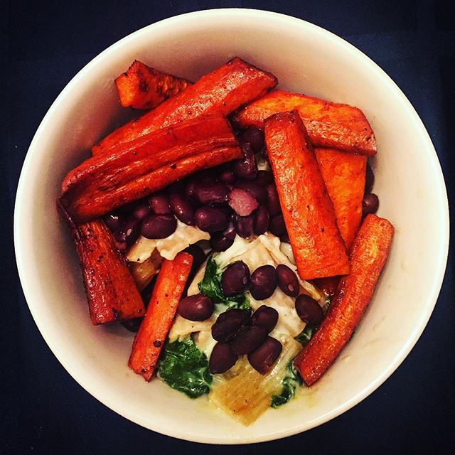 Caught off guard by this one: healthier Mac n cheese (made with Greek yogurt, whole grain pasta, & spinach…inspired by living in the south!), balsamic roasted carrots, and black beans! Randomly threw together what I had left in the fridge, and oh so glad I did! 🍴#RDChat #RDEats #HealthyEats #Dinner #Nutrition #Dietetics #Health #Health #EatPretty #WholeGrain #GreekYogurt #Veggies #Kosher #Leftovers