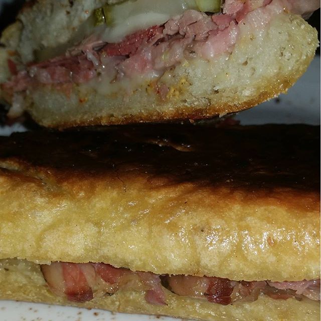 Cubano (lamb ham, pastrami, coconut swiss cheese, herb mustard, house baguette, pickles) Pardes 497 Atlantic Ave, Brooklyn NY #kosher #food #meat #dairyfree #lamb #ham #pickles #coconutcheese #dairyfreecheese #pastrami #swisscheese #baguette #sandwiches #sandwich #cubano #appetizer #pardes #restaurant #parkslope #brooklyn #newyork #foodie #foodporn #instafood #eeeeeats #foodstagram @pardesrestaurant #kosherfood #kosherfoodie