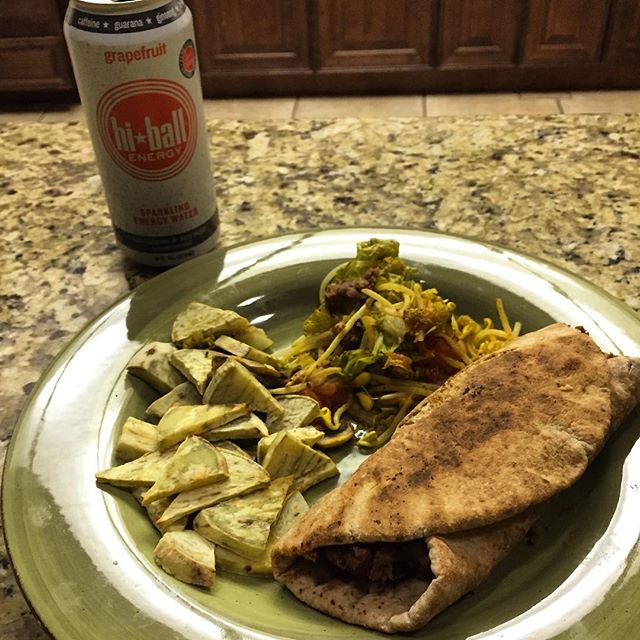 Dinner is a pita burrito with refried beans, soy sausage and mushrooms, and on the side I had sweet potato pizza shaped fries, and some mixed veg. To wash it down I had a hi-ball energy drink. It was my first time trying this drink and it was pretty good. Today has been an awesome day in between getting a call back from a job I applied to and a really great session with my counselor. I've been feeling indifferent lately but today reminded me that times aren't all bad and that I should focus on the positive. Have a good night guys. #ed #edsoldier #edsoldiers #eatingdisorderrecovery #eatingdisorder #eating #anarecovery #balancednotclean #strongnotskinny #pita #burrito #beans #sweetpotatofries #pizza #veggies #energy #grapefruit #veganmeal #vegan #vegetarian #kosher #plantbased