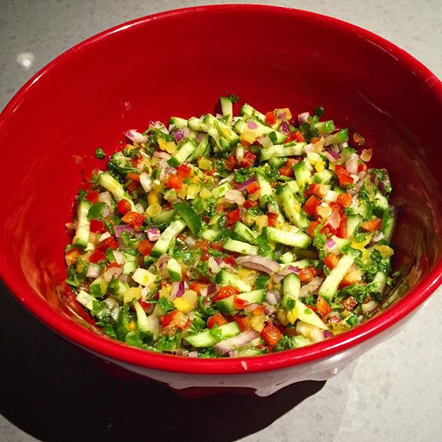 Israeli salad in honor of #buyisraelicookisraelibakeisraeli #israel #Israeliinspired #salad #vegan #veggies #vegetarian #vegetable #cookingwithstyle #cookingwithstylekitchen #colorful #foodie #foodlove #foodart #foodie #October #homemade #herbs #flavor #healthy #kosher #snack #fresh