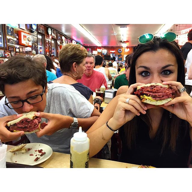 #Katz's #Restaurant #Kosher #Casher #Foodporn #Food #FoodAddict #Pastrami #Sandwiches. Lunch time today at Katz's, the best Pastrami sandwiches in the world! Une expérience unique a vivre une fois dans sa vie. Ps seulement pour la bouffe, mais pour l'ambiance et les lieux. Deux petites anecdotes au sujet de Katz's: c'est Jerry Lee Lewis qui a rendu Katz's celebre avec sa boutade: send a salami to our boys in the army; Dans le film "When Harry met Sally", Meg Ryan simule un orgasme en public tout en étant attablée chez Katz's…. Bref…c'etait orgasmique!!!😊😊😊😊😜😜😜