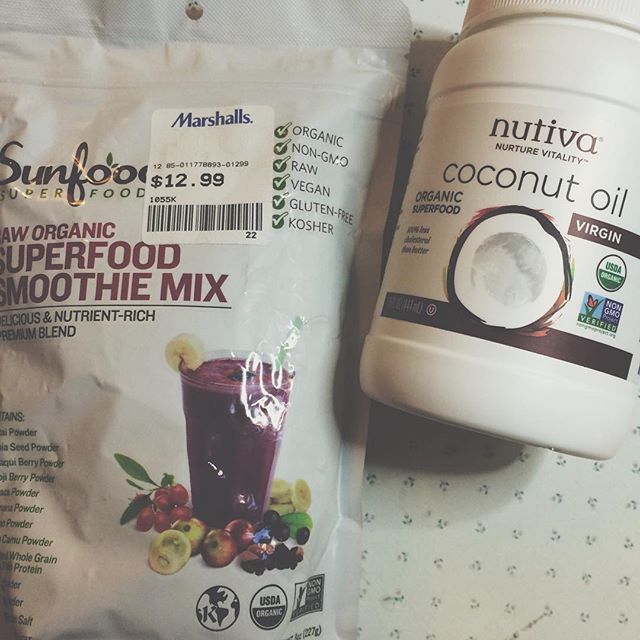 Look what I got from Marshalls👍 #nutiva #sunfood #organic #raw #coconutoil #coldpressed #nongmo #vegan #glutenfree #kosher #smoothie #superfood #yay #yummy #marshalls #discount