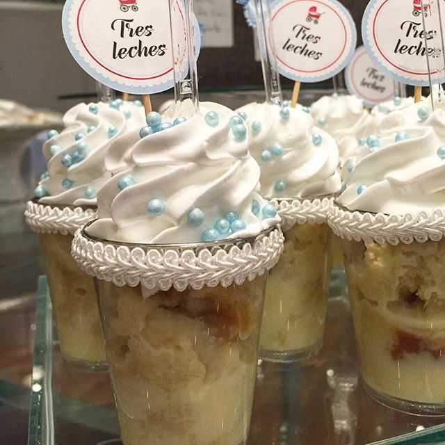 Mini postre de las tres leches, con merengue italiano muy cremoso… Yumm! #postres #desserts #meringue #tresLeches #kosher #bogota #myriamcamhigourmet #babyboy #bakery
