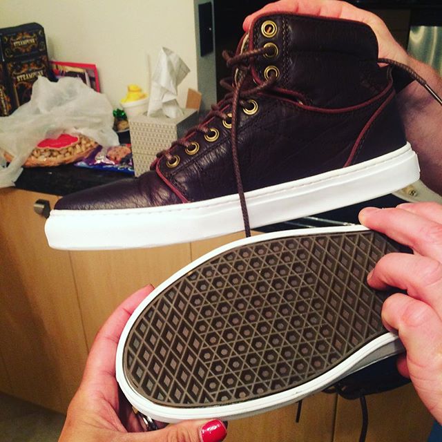 My step father Zvi said my hubby Scott's new #Vans are #Kosher !!! It has #StarOfDavid on the bottom tread!!! (Jewish Star)