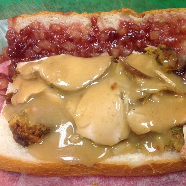 Pilgrim sandwich (smoked turkey, relish, stuffing, slaw, gravy, club roll) Southside Sandwich Shop & Smokehouse 315 Cedar Bridge Ave, Lakewood NJ #kosher #food #meat #dairyfree #bbq #smoked #turkey #stuffing #gravy #thanksgiving #thanksgiving2015 #lakewood #restaurant #newjersey #foodie #foodporn #instafood #eeeeeats #foodstagram #kosherfood #kosherfoodie #kosherrestaurants #kosherrestaurant