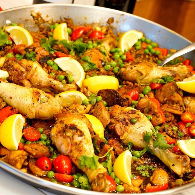 Spanish Chicken Paella – Paella de Pollo. This is a classic recipe from Spain. Paella is said to refer to the actual pan that the food is cooked in. A large flat round pan with shallow sides. Everything in the dish is cooked in one layer. It is cooked by adding ingredients bit by bit to create a colorful and flavorful mélange of epicurean excitement. I’m using a 100% pastured free range chicken from KOL Foods. (www.KOLFoods.com) I pair it with a nice chardonnay from Casa del Cielo courtesy of our friends at KosherWine.com (http://bit.ly/1Bpzcs8). To serve, put the pan in the middle of the table and let everyone take a portion into their plate, they can squeeze the lemon wedge into their portion and enjoy. I like to serve a fresh seasonal green salad with it. This recipe has become a family favorite, especially for during the week. Cook it, serve it, eat it and then you’ll be sure to say, “que rico . . . muy sabor!” L’Chaim . . . Avi Please be sure to subscribe to me. :-) www.facebook.com/aviskosherkitchen www.aviskosherkitchen.com. Learn how to prepare this here: http://www.youtube.com/watch?v=3HJNyS7SbJA&sns=em #organic #yummy #kosher #kosherfood #chicken #paella #food #foodporn #pollo #rice #family #meal ##dinner #wine