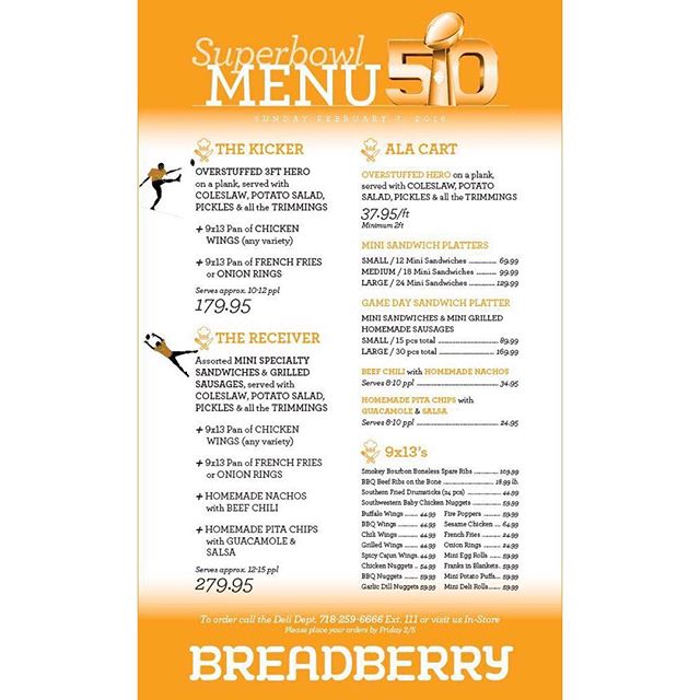 Superbowl 50 kickoff is Sunday, February 7th. Have you checked out our kicker and receiver packages?!? Place your orders and celebrate Superbowl 2016 with Breadberry! #superbowl #superbowl50 #2016 #menu #breadberry #kickers #receivers #homeofgoodfood #food #sportsfan #igdaily #foodie #instafood #foodgasm #foodphoto #foodphotography #foodblogger #foodblog #kosher #food52 #f52grams #foodstyling #vscofood #bonappetit #foodstagram #buzzfeedfood