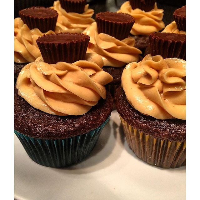 Tonight's #baking adventure! Chocolate cupcakes with a peanut butter filling, peanut butter cream cheese frosting and a reeses on top. #cupcake #chocolate #chocolatecupcake #peanutbutter #peanutbuttercup #peanutbutterfrosting #frosting #reese #reesescup #fromscratch #baker #dessert #adventure #creamcheesefrosting #kosher #kosherbaking #kosherdairy