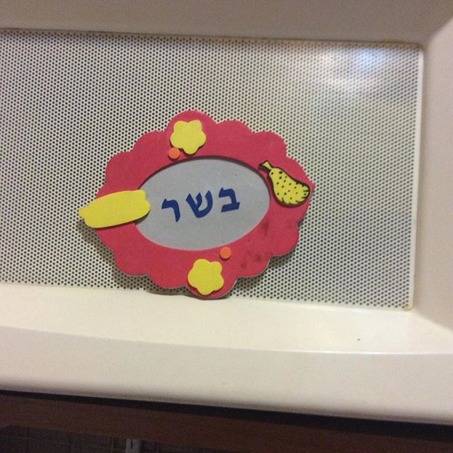 Who knew that craft projects from camp would be useful years later? 馃槉馃槂馃槵 #kosher #labeling #kitchen #kashrut #meat #讘砖专 #microwave #decor #crafting #artsandcrafts #childhood #summercamp